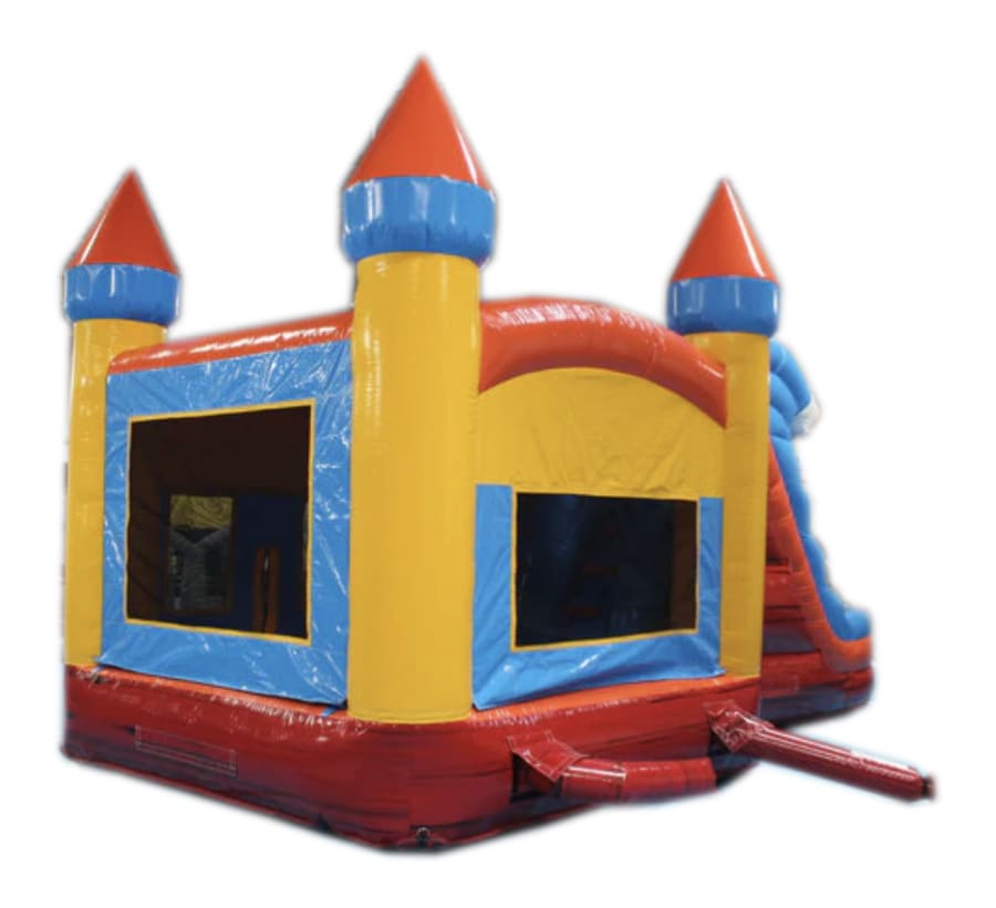 29' Red, Blue & Yellow Marble Helix Bounce House Wet or Dry Water Double Slide Combo