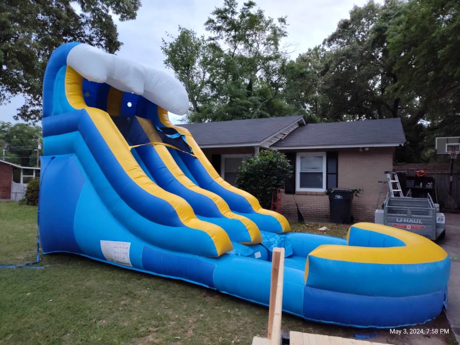 Get ready to turn your backyard into a waterpark wonderland with the 12ft Tsunami Blue Marble Waterslide! Available for delivery in [Delivery Area], this waterslide is sure to be a hit at your next summer gathering. 🚚🌴
